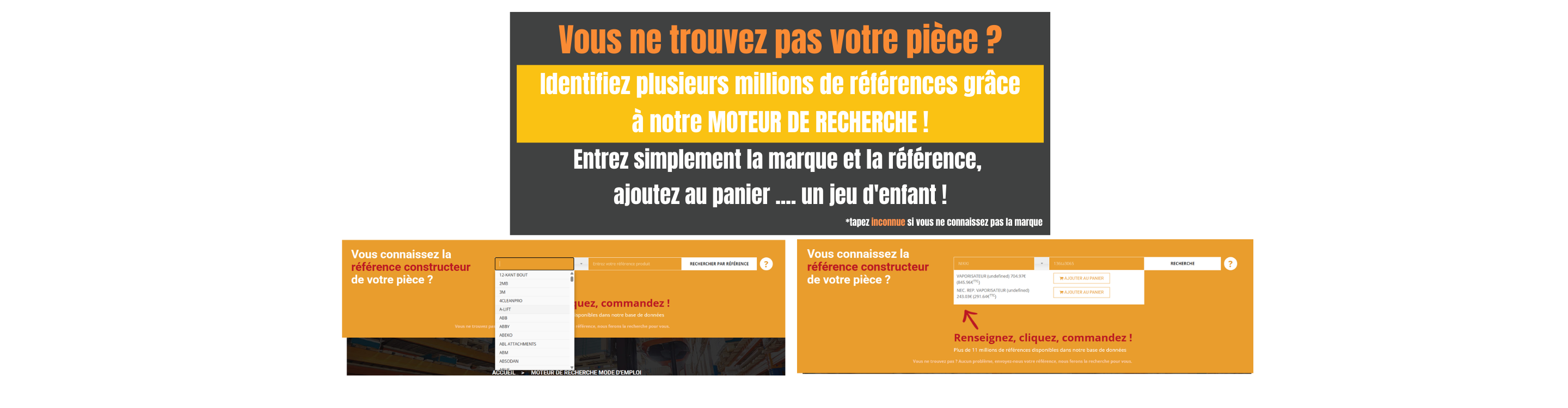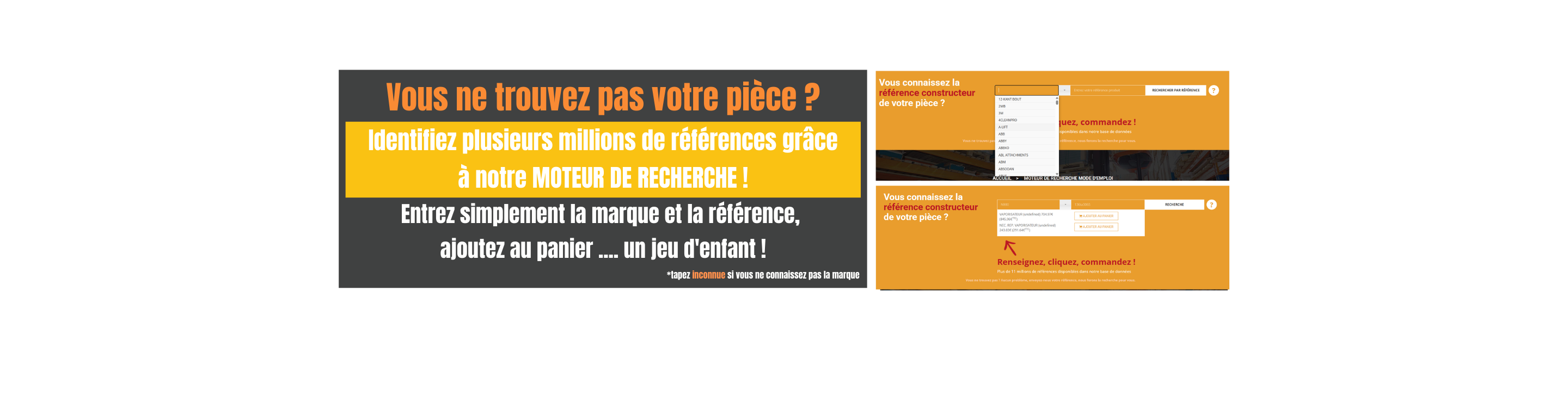 Vous ne trouvez pas ? Aucun problème, envoyez-nous votre référence, nous ferons la recherche pour vous.