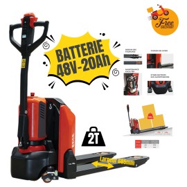 Transpalette électrique compact 2000kg, fourches larges 685mm et batterie LITHIUM 48V-20Ah